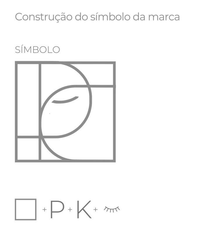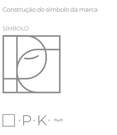 O símbolo segue o estilo de monograma, criado a partir da combinação e sobreposição de letras. A forma central da logo é um quadrado, uma figura geométrica que remete à estabilidade, equilíbrio e perfeição, conceitos diretamente associados à prática da Harmonização Facial. Dentro desse quadrado, estão as iniciais P e K, representando o nome e o sobrenome da Dra. Paloma Kelly.