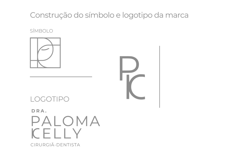 A construção da parte tipográfica que compõe o logotipo segue a mesma estética que faz referência as inicias do nome e sobrenome da Dra. Paloma Kelly, trazendo relação, personalidade e autenticidade para o conjunto da construção de sua marca.